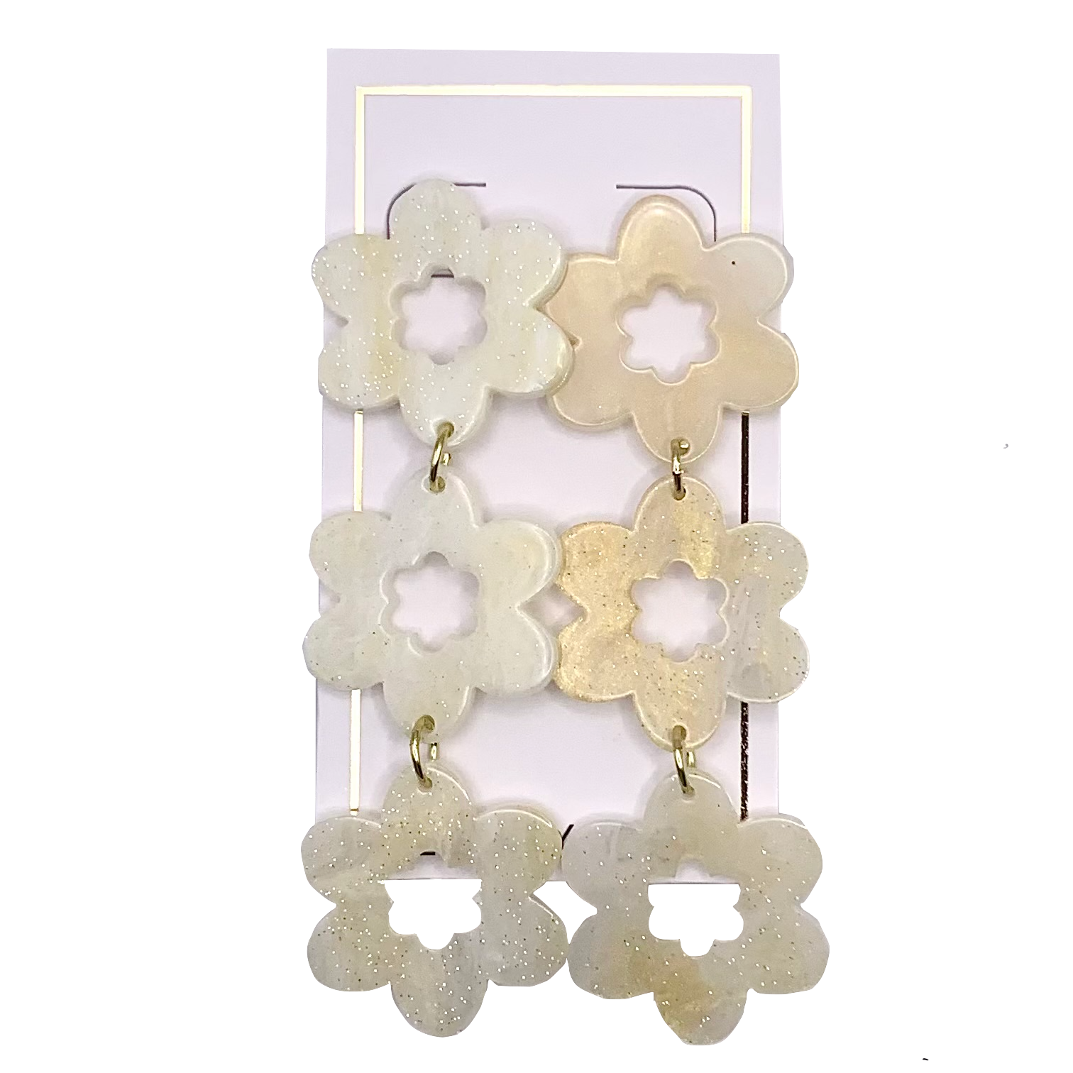 Introducing Zoey, a stunning and sophisticated accessory that will elevate any outfit. These earrings feature three delicate flowers, each handcrafted with intricate detail and finished with a polished shine.